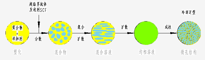 采用超臨界流體,即超臨界狀態的氮氣或二氧化碳,作為發泡劑,經過精確計量后,與熱塑性塑料熔體充分混合均勻,形成均勻的熔膠/發泡劑均相體系,包括單相溶液;所獲得的這種均相體系,經過發泡成型口模或注塑模具實現所需要的發泡制品,例如微孔發泡制品和結構發泡制品、高發泡材料。